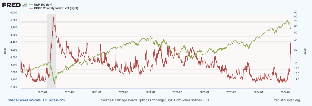 As mentioned in my "EOY Countdown Reminder" article (https://www.linkedin.com/pulse/august-1st-eoy-countdown-reminder-francisco-becerra-6ozdf/), interest rates are coming down. The Federal Reserve Bank of Atlanta now shows a 96.8% market probability of a rate hike or cut by 2024-09-18. (It would be nice to have that level of certainty about anything.) Part of the motivation for lowering rates is the criticism associated with the sudden drop of the S&P 500 and the corresponding spike in the CBOE Volatility VIX index. (See graph.) The resulting finger-pointing towards the central bank will likely place additional pressure on lowering rates sooner rather than later. At that time, businesses, whether they realize it or not, will be standing at the end of a long line waiting to order a fresh refinance, extend their credit lines, or find a new lender. CORNER (www.cornerfinance.com)can successfully guide business owners and CEO’s in managing their place in line, even while they focus on your important core business.